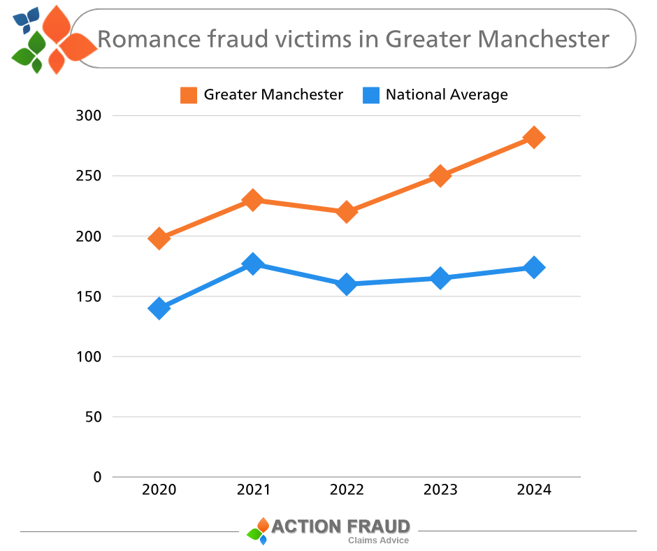 Last year, Greater Manchester victims approached Action Fraud 282 times to tell them that they had been affected by romance fraud.
