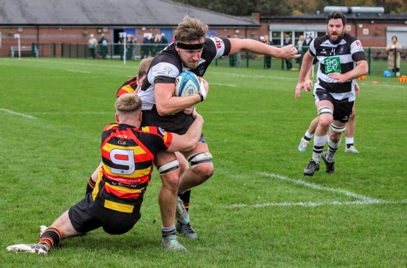 The pressure was telling on the home side and following a flare up in tempers both sides collected yellow cards. Trafford were soon caught cold when a simple pass interchange at the front of a lineout saw the Moor hooker stroll over, the conversion brought them right back in at 20 – 24.