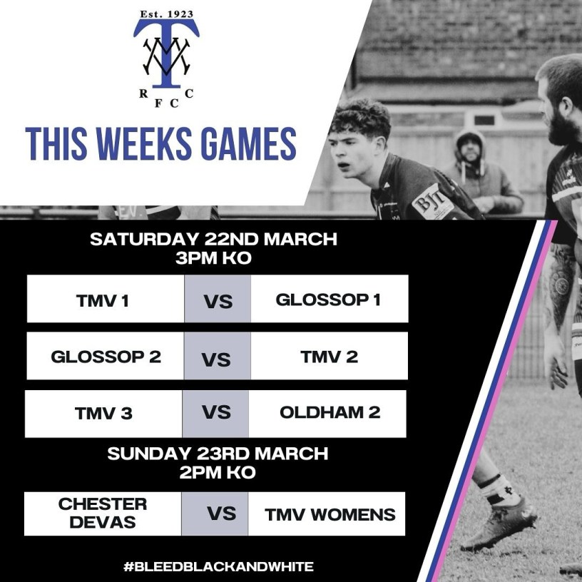 Trafford MV will be turning out 3 teams once again this weekend, being one of the few clubs in the area to still offer social rugby for the occasional, non training player profile. The 2nd XV travel away to Glossop while the TMV 3rd XV will host Oldham 2nd XV all games with a 3.00pm kick off.