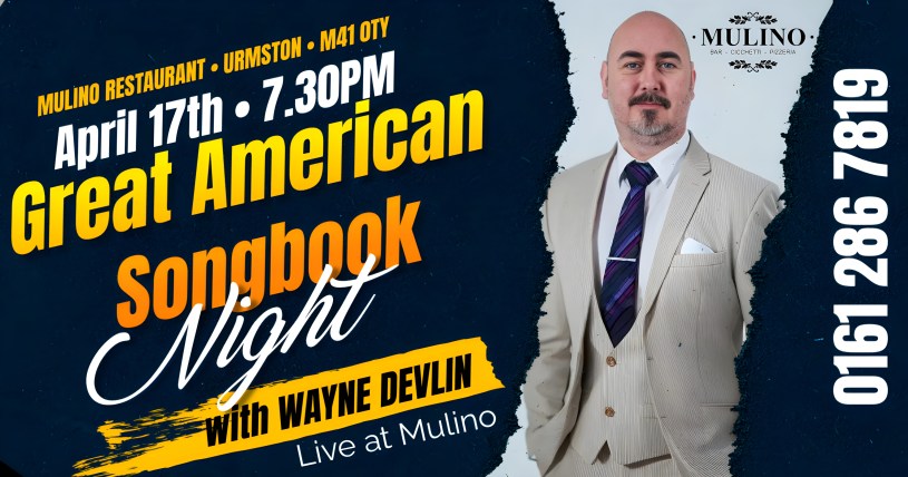 With the launch of his new monthly performance series, Live at Mulino, Wayne is setting out to revive and celebrate the timeless sounds of the Great American Songbook right in the heart of Urmston.
