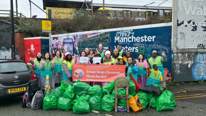 A team of 35 volunteers gathered from across Greater Manchester to take part in the effort. Working together throughout the morning, the group collected approximately 40 bags of litter, removing waste from walkways and surrounding public areas frequently used by commuters.