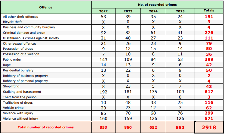 In the notes with this information, it states that this is ‘All reported crimes’, so the figures shown will be more than shown but give you an idea of what is going on in Partington from 2022 to 2025.