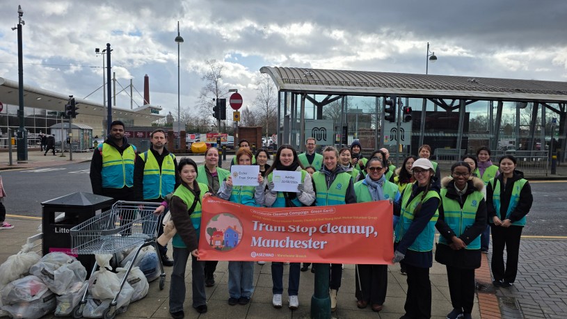 Salford’s tram stops received a welcome refresh today as approximately 25 ASEZ WAO volunteers from the World Mission Society Church of God in Manchester carried out a community clean-up.