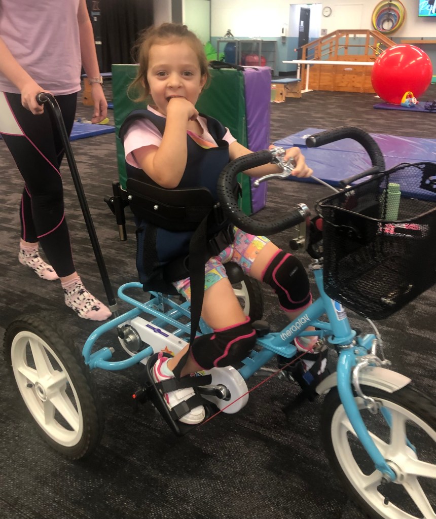 Ava is non-verbal and can’t communicate through speech or gestures. She requires full-time support with daily life, including bathing, toileting and feeding. She also experiences major motor and balance difficulties, can only walk short distances and falls often. Ava often bites and pulls hair out and screams in frustration.
