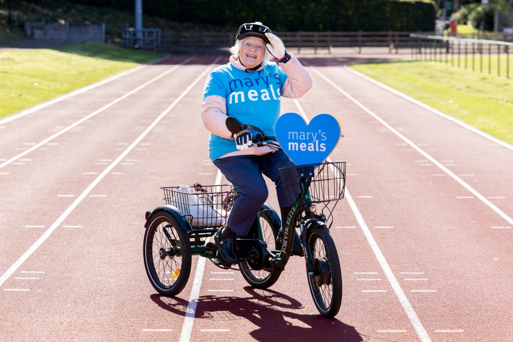 As a Great Grandmother at 87 years old, I may be slowing down a little, but I’m certainly not ready to stop moving for a good cause. Recently, I took on my third fundraising challenge for Mary’s Meals – cycling 30 miles on my tricycle around a racetrack, over three days, to celebrate the charity reaching the incredible milestone of feeding three million hungry children every school day.
