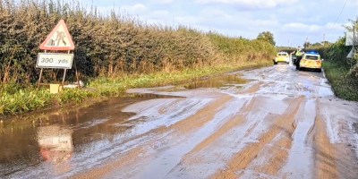 Flooding and sand mound affecting country lanes to Partington